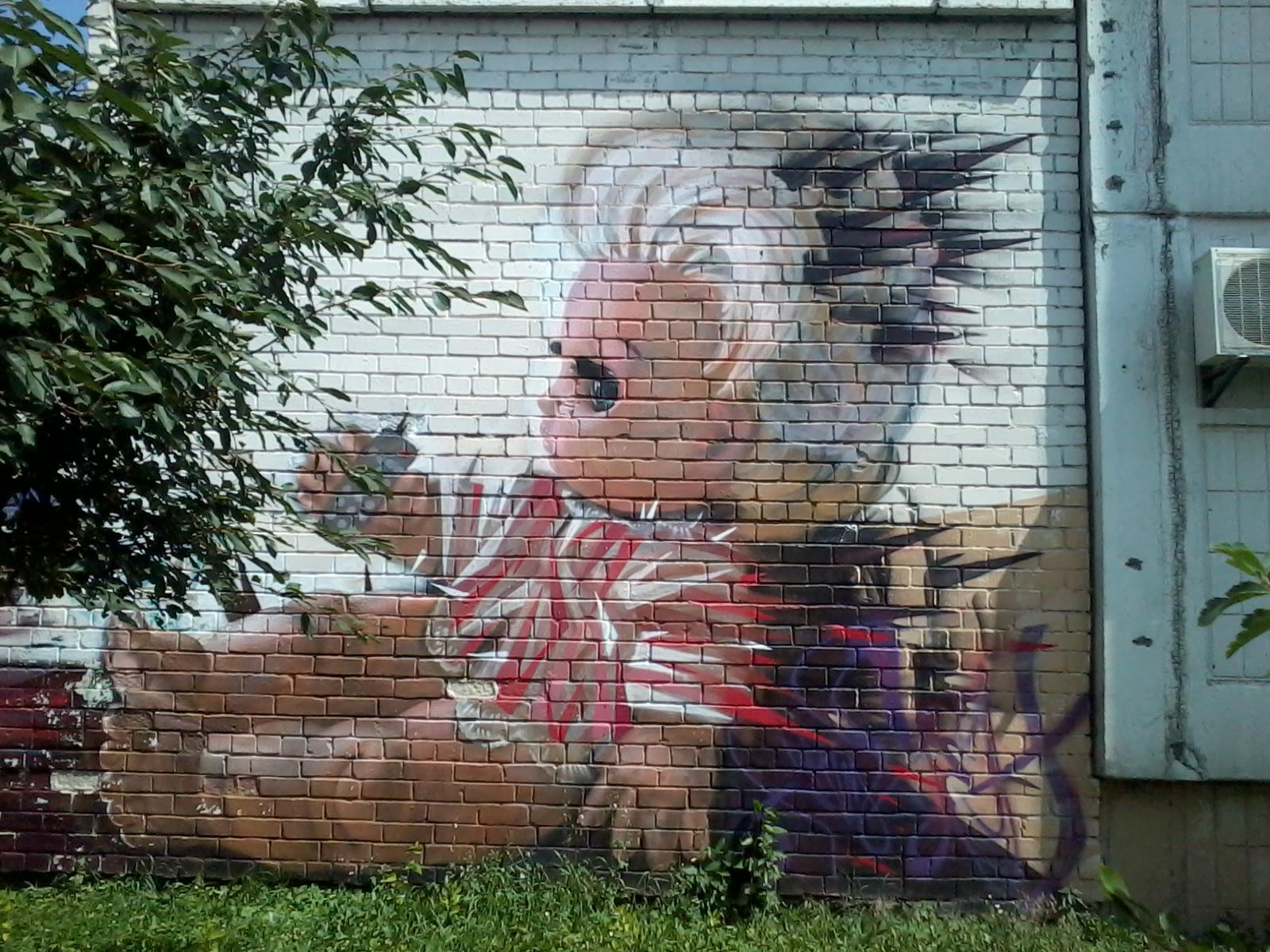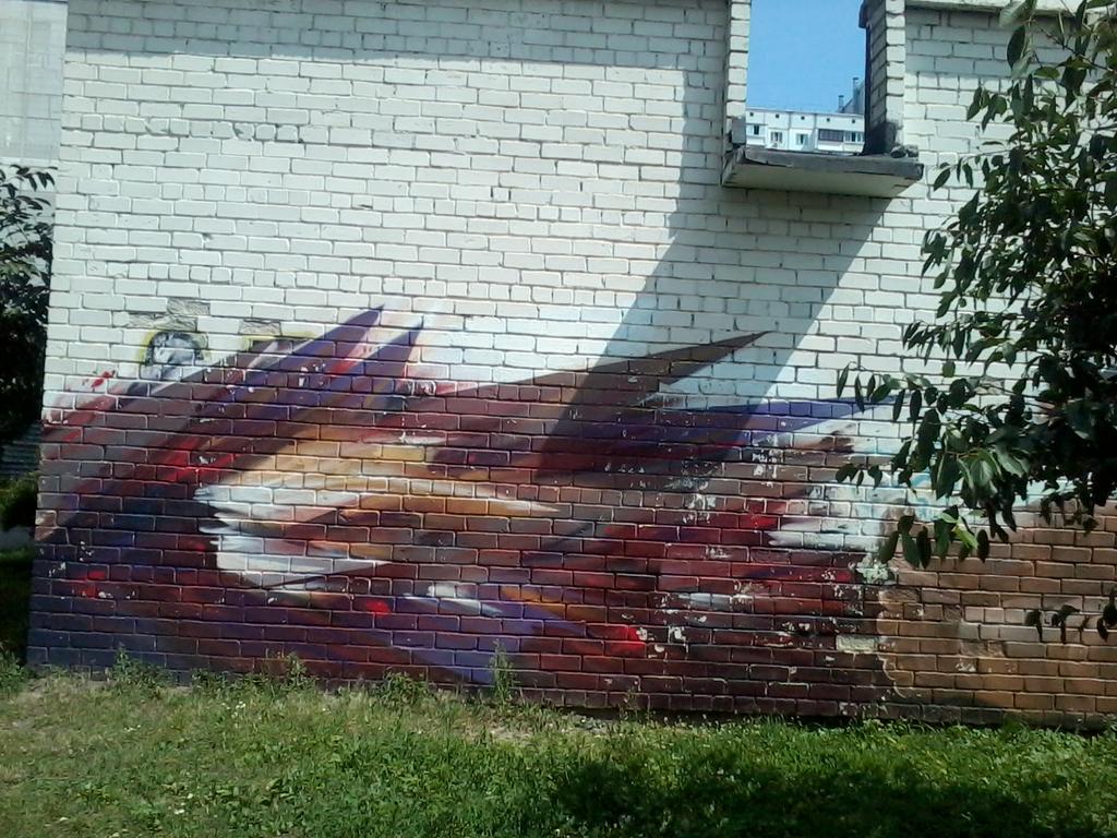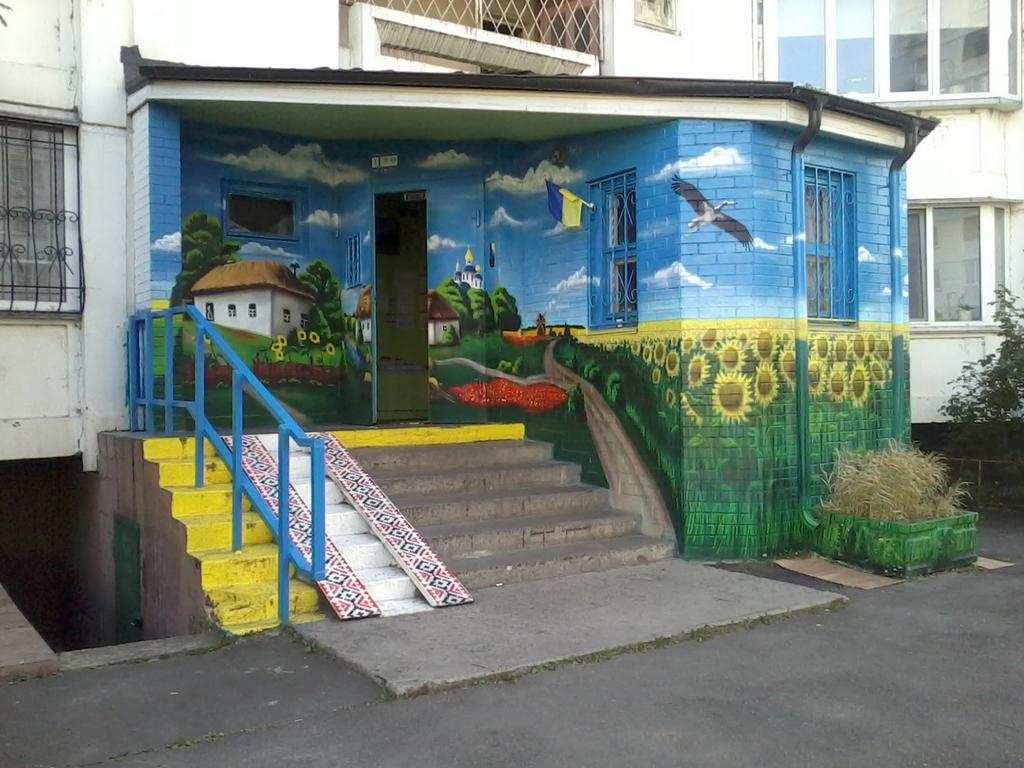 Роспись бойлерной во дворе дома на Тимошенко, 14а. Молодой художник посвятил ее своему отцу, тоже художнику.